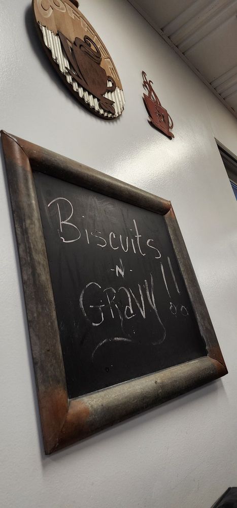 Sausage and biscuits topped with gravy, served with home fries and two eggs any style